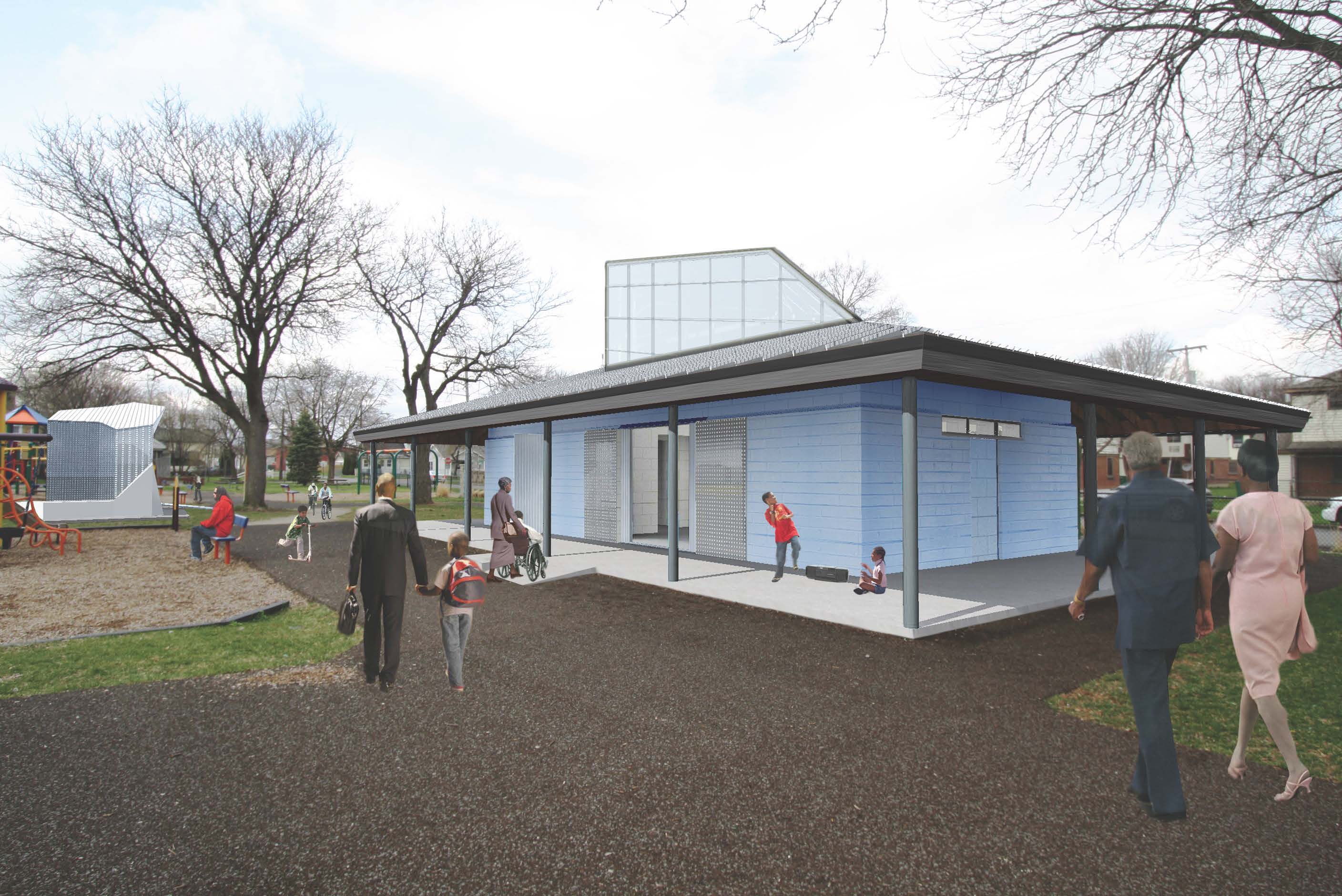 Guided by input from residents, The Syracuse Housing Authority, Syracuse Parks and Syracuse Schools among others, architecture and engineering students at Syracuse University have partnered with UPSTATE, the Near Westside Initiative, the City of Syracuse and Parks department to envision the future of the field house in Skiddy Park and to develop a system for refurbishing field houses throughout Syracuse. The project strives to launch an ongoing conversation about what the field house at Skiddy Park can become, within a broader study of the future of field houses in Syracuse’s many public parks. We hope to see you all there and we hope to establish a productive partnership. Throughout the Spring students met with stakeholders to advance and refine the local community’s vision for the field house. Preliminary designs were presented on April 24, 2014.