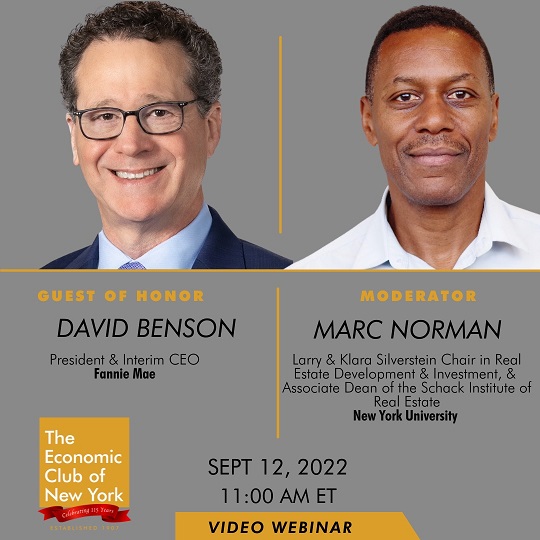 Such a great conversation with David Benson, President of Fannie Mae. Thanks to the Economic Club of New York for inviting me to moderate and for fostering discussions with amazing leaders across industries. It is great to see conversations about the racial wealth gap, housing opportunity, support for diverse leadership and green and social bonds brought to the forefront. All issues we discuss, debate and engage with at NYU SPS Schack Institute of Real Estate.