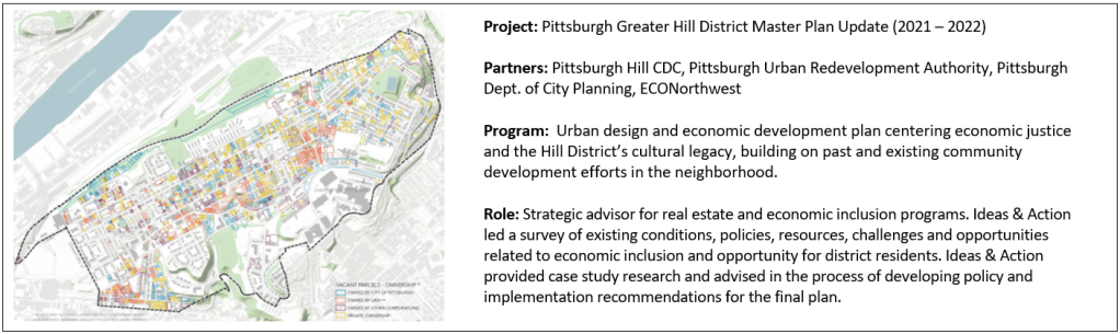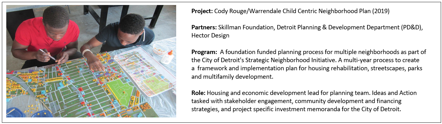 Working at a range of scales and geographies the common thread in the work of Ideas and Action is better outcomes for communities and better opportunities for people. Working in partnership with a broad range of organizations on issues of finance, feasibility, planning and implementation we strive for a positive impact in communities across the United States.